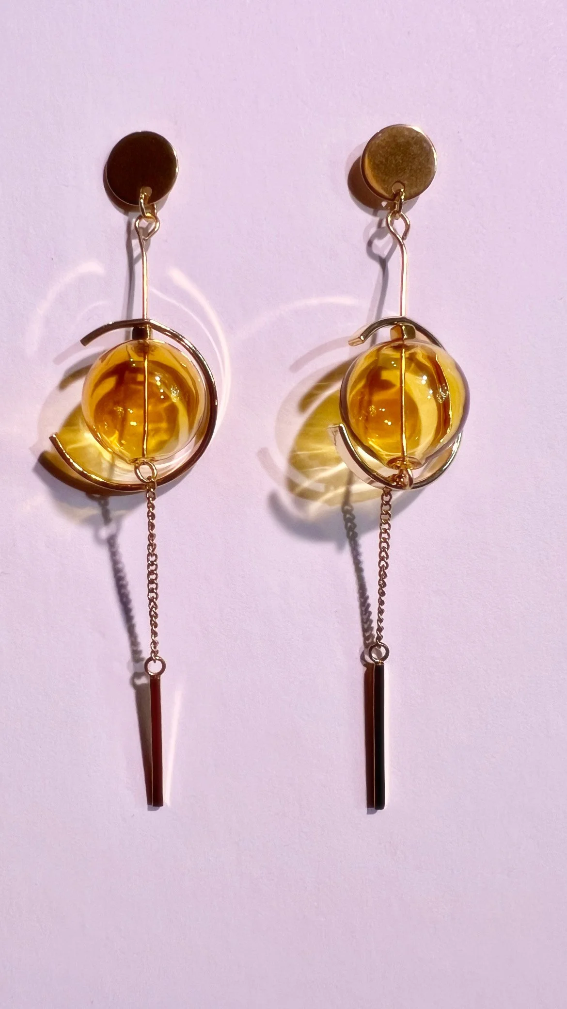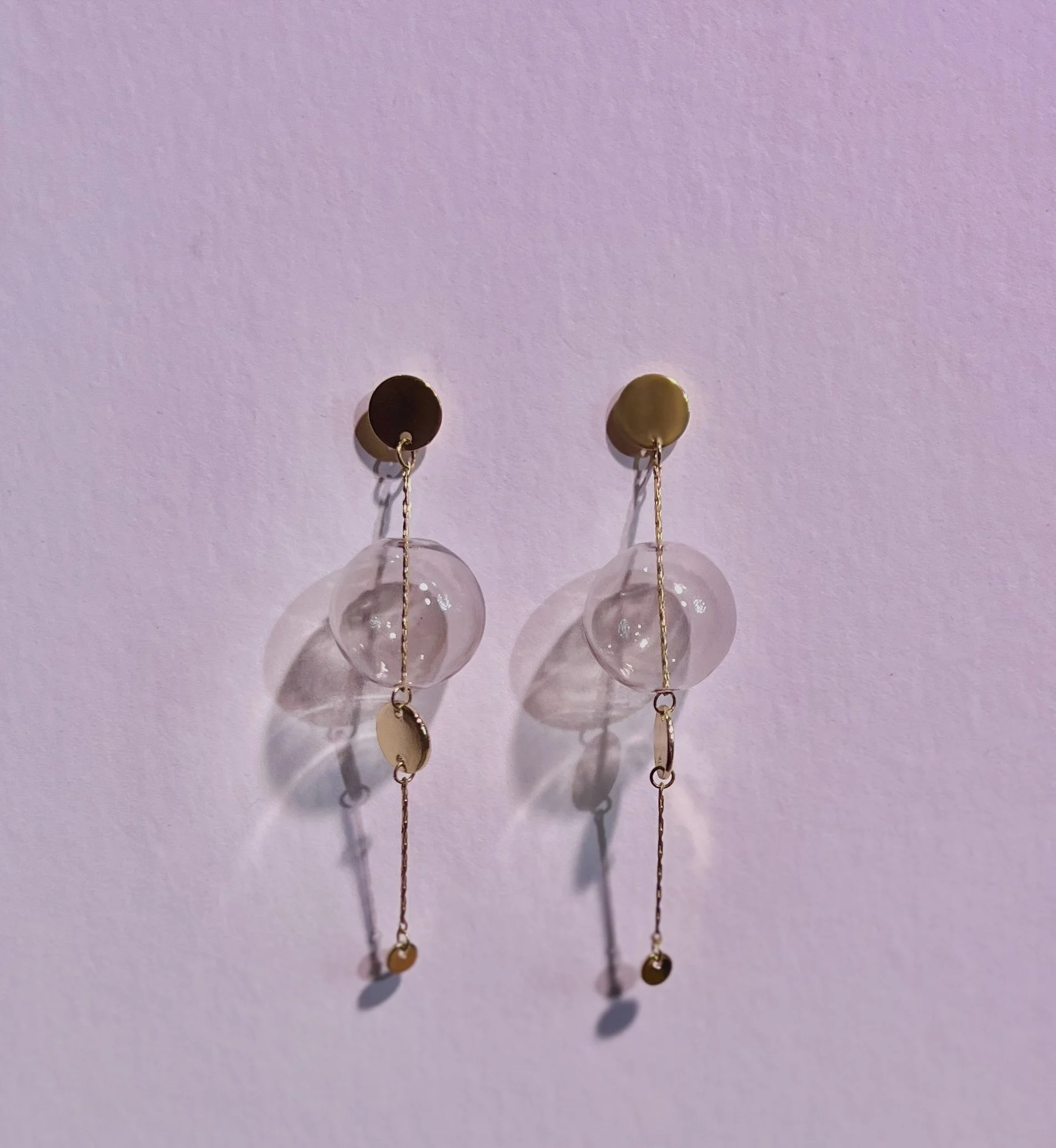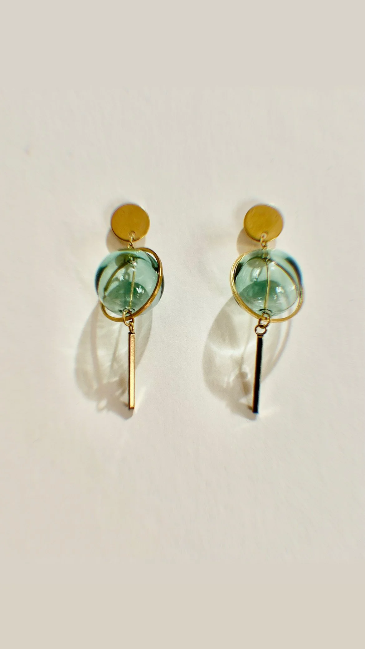 Our beautiful statement earrings are hand-blown hollow glass bead that catches the light beautifully, designed with 14k gold plated accessories. They are hypoallergenic and very lightweight!