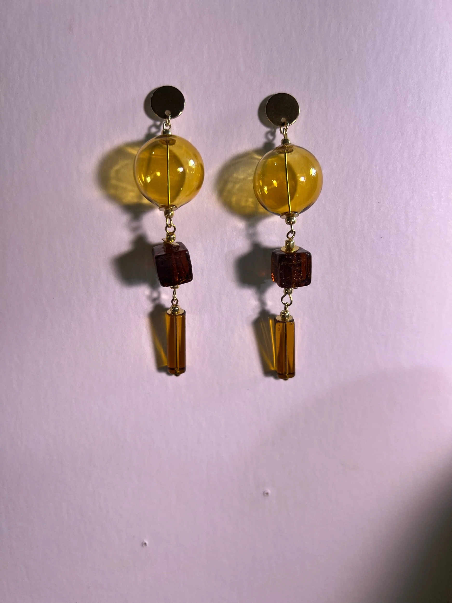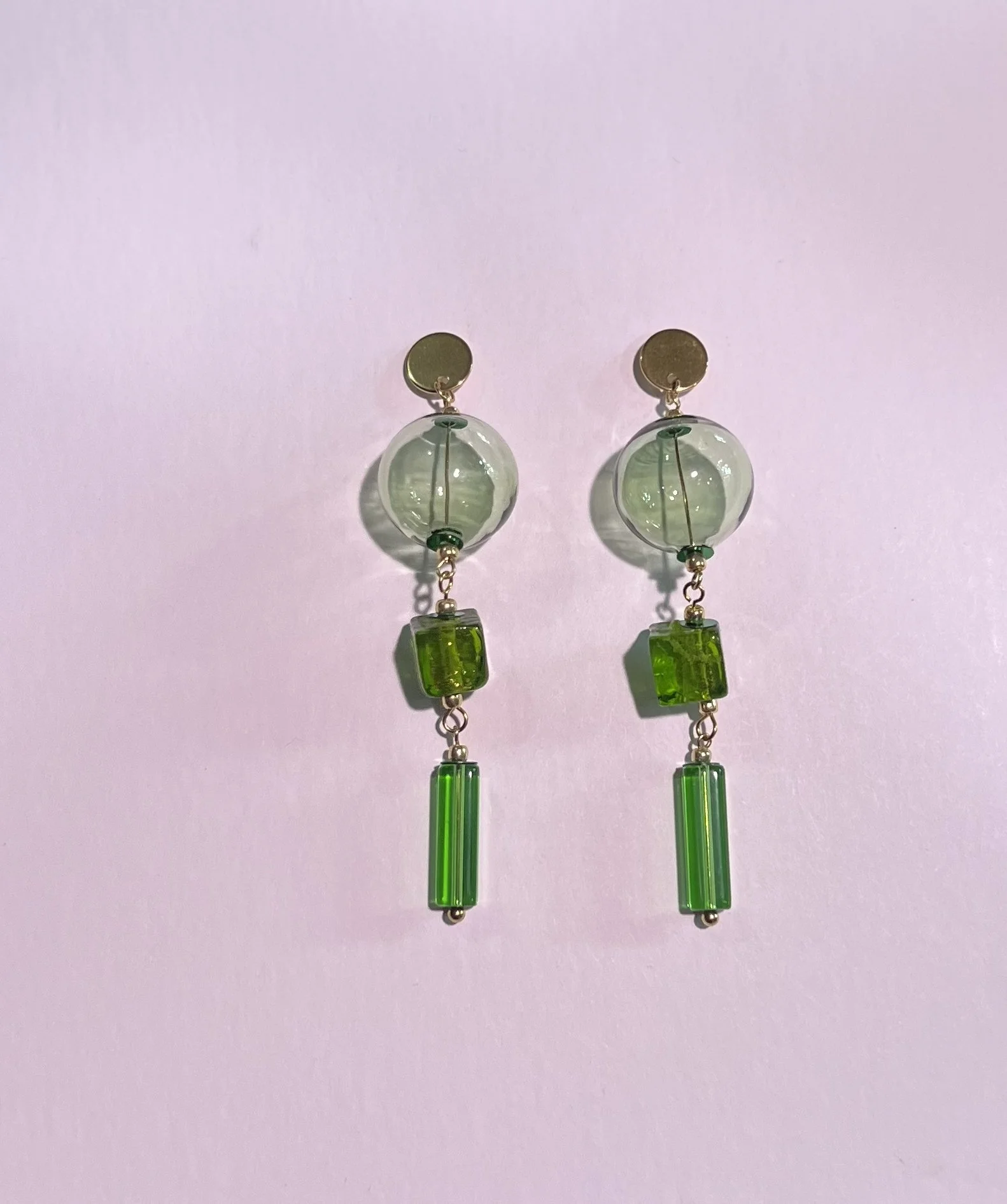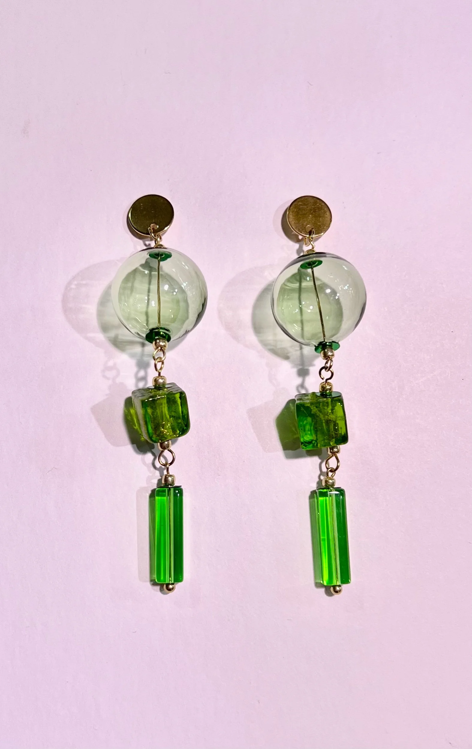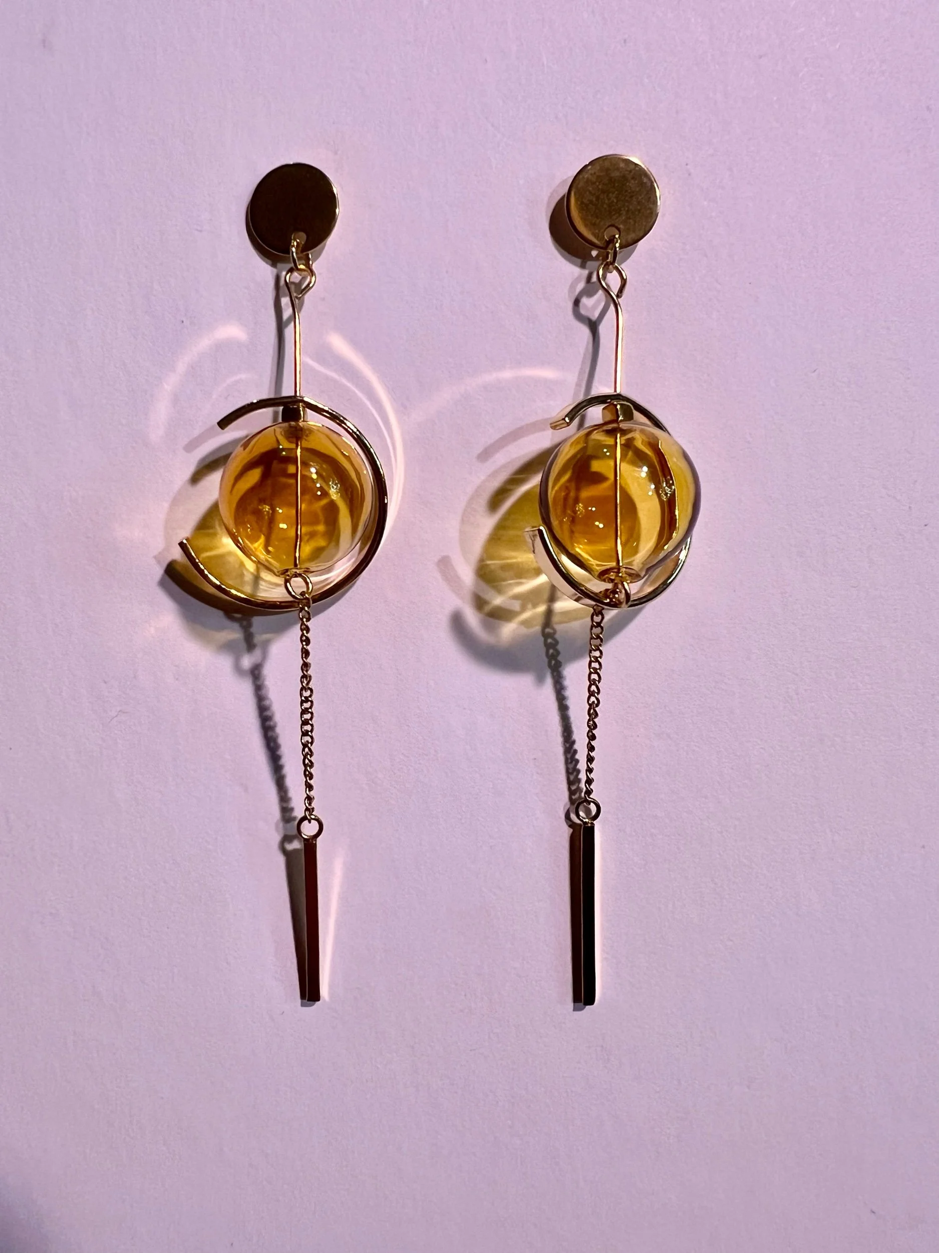 Our beautiful statement earrings are hand-blown hollow glass bead that catches the light beautifully, designed with 14k gold plated accessories. They are hypoallergenic and very lightweight!
